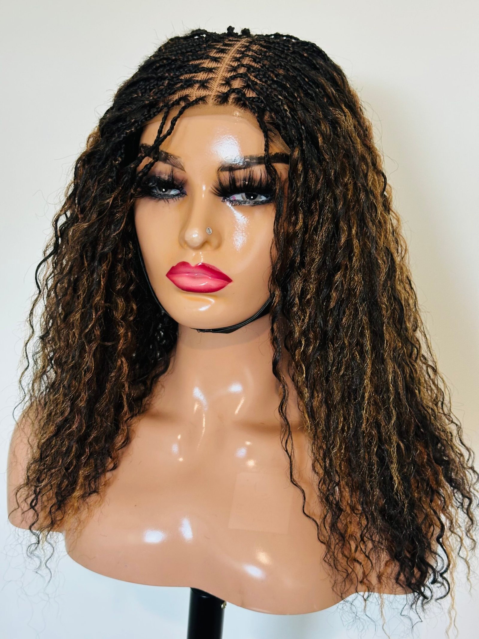 This stunning unit features neatly hand-braided strands with soft curly ends, giving you that perfect natural finish — classy, lightweight, and easy to maintain.